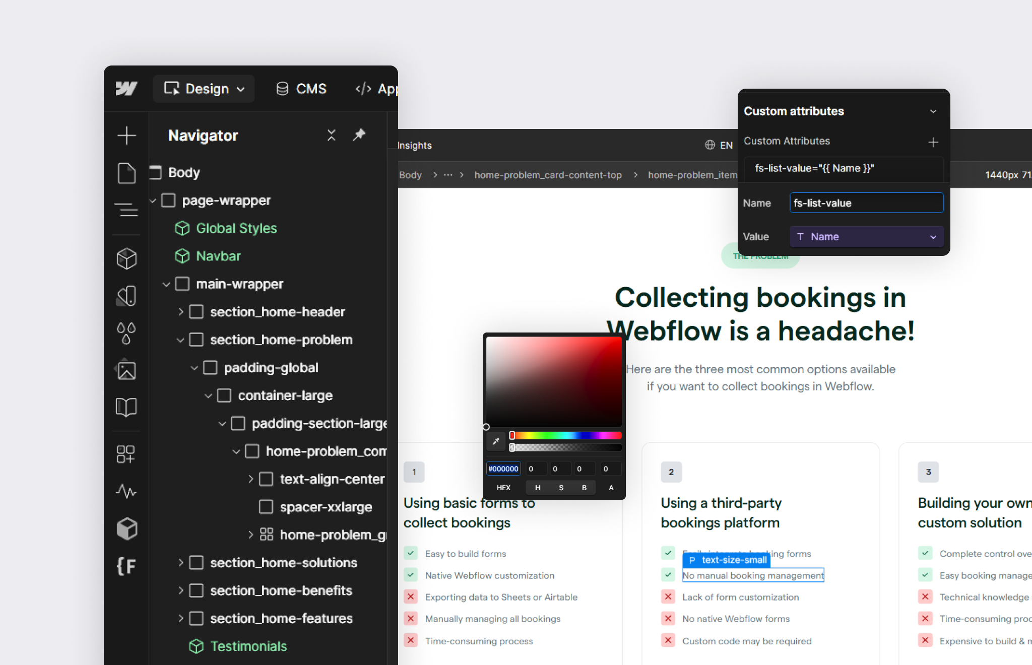 Anything related to Webflow design or development: new pages, redesigns, UI improvements, CMS setup, animations, bug fixes, landing pages, component updates, and more.